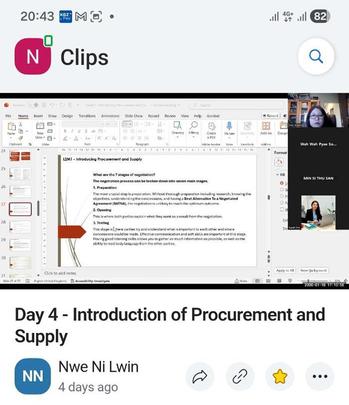 Level 3 - Advanced Certificate in Procurement and Supply Operations will be opened on 24th February 2026 until end of April 2026 excluding holiday. The Level 3 class will be held every Tuesday and Thursday starting from 6:30pm to 7:30pm. For those who are interested to attend, please send my personal email, nnlwin2007@gmail.com or my viber/Whatsapp no 09976791139 for registration.